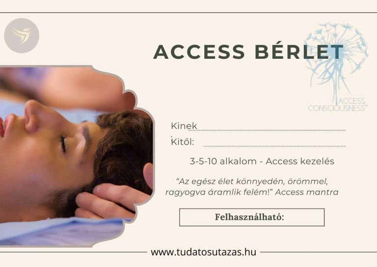 | Access Bars egy alkalom | 60 perc | 13 000Ft |